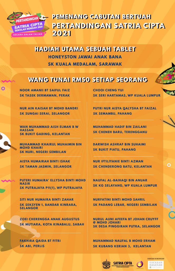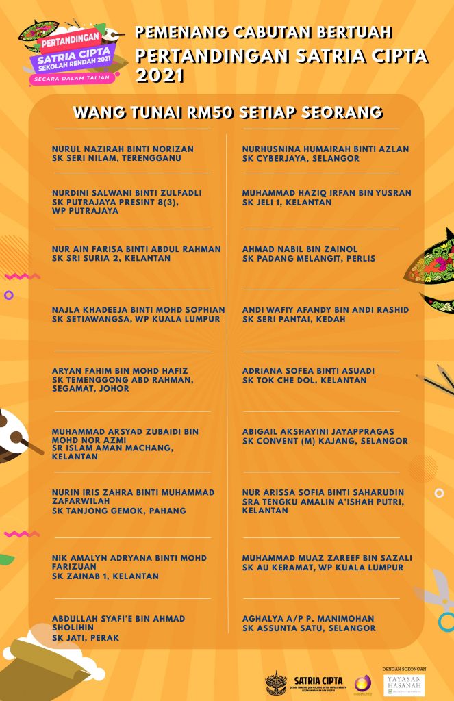 TAHNIAH KEPADA PEMENANG CABUTAN BERTUAH PERTANDINGAN SATRIA CIPTA 2021