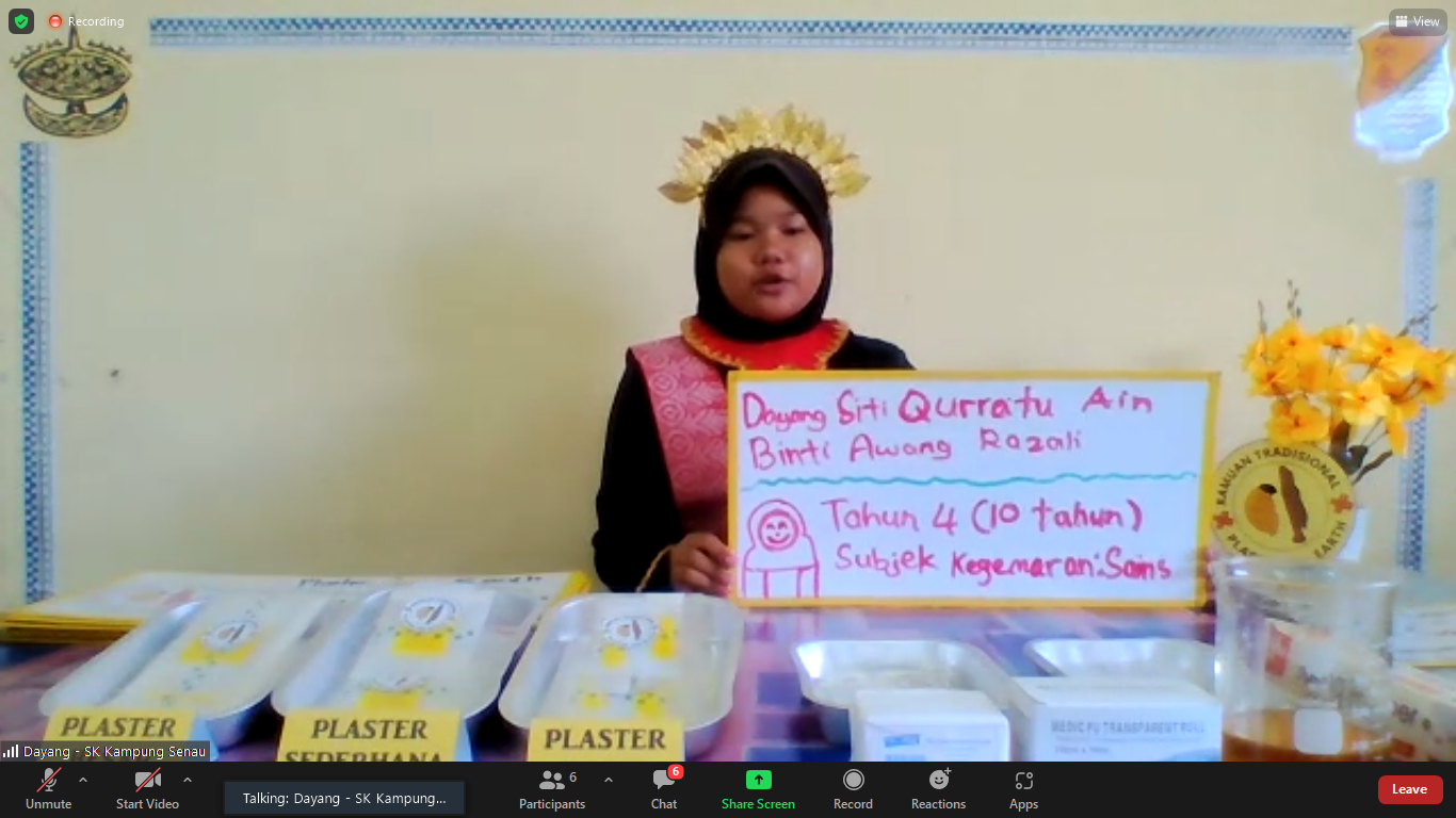 Persembahan dari DAYANG SITI QURRATU AIN BINTI AWANG RAZALI dari SK KAMPUNG SENAU dengan Tajuk MINYAK SEA EARTH