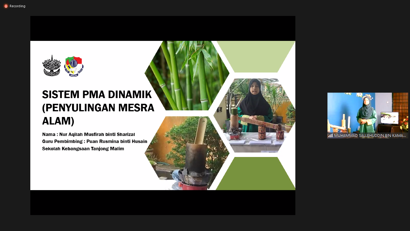 Persembahan dari NUR AQILAH MUSFIRAH BINTI SHARIZAL dari SK TANJONG MALIM dengan Tajuk SISTEM PMA DINAMIK (PENYULING MESRA ALAM)