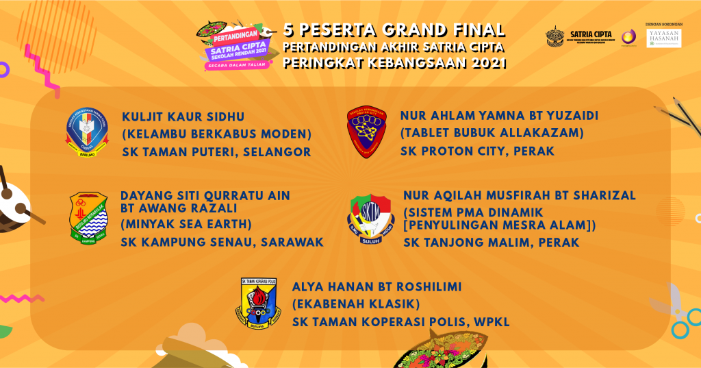Tahniah kepada 5 Grand Finalis Pertandingan Satria Cipta 2021. Kesemua akan berentap pada 20 November 2021.
