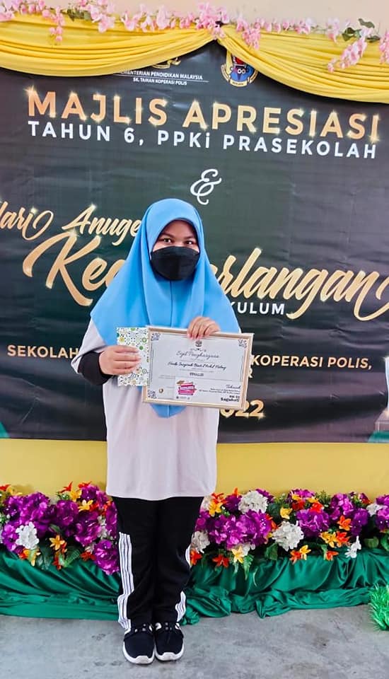 Tidak lupa juga Tahniah kepada adik HUDA INSYIRAH BINTI MOHD HILMY merupakan FINALIS Pertandingan Akhir Satria Cipta Peringkat Kebangsaan 2021.